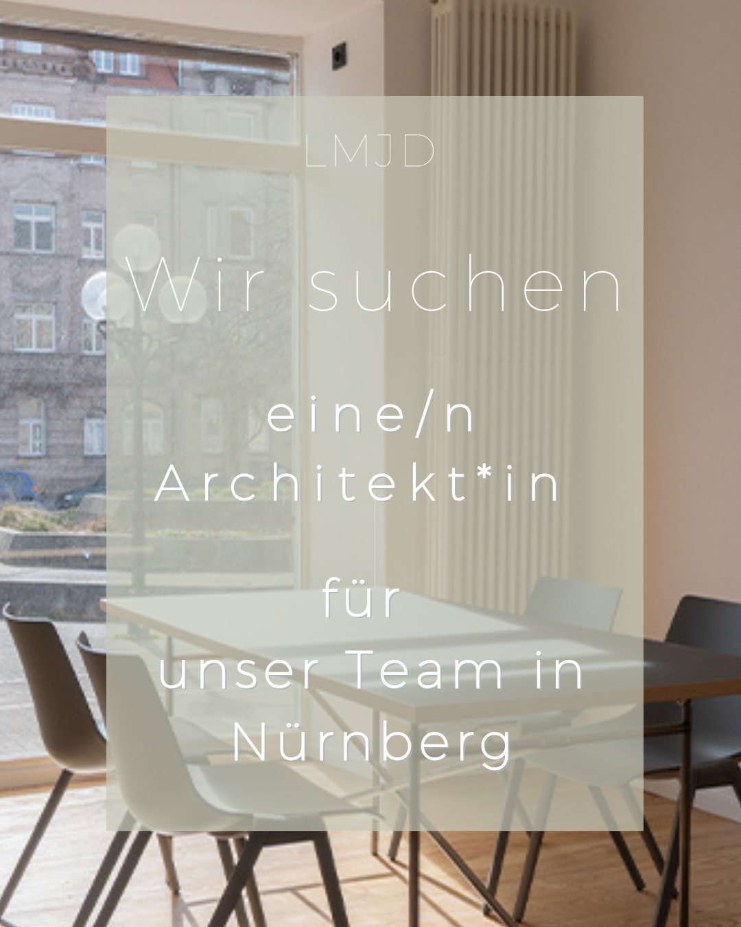 LMJD Architekten Part mbB in Nürnberg sucht eine*n Architekt*in (m/w/d) mit Schwerpunkt Ausschreibung und Bauleitung (Leistungsphasen 6–8).