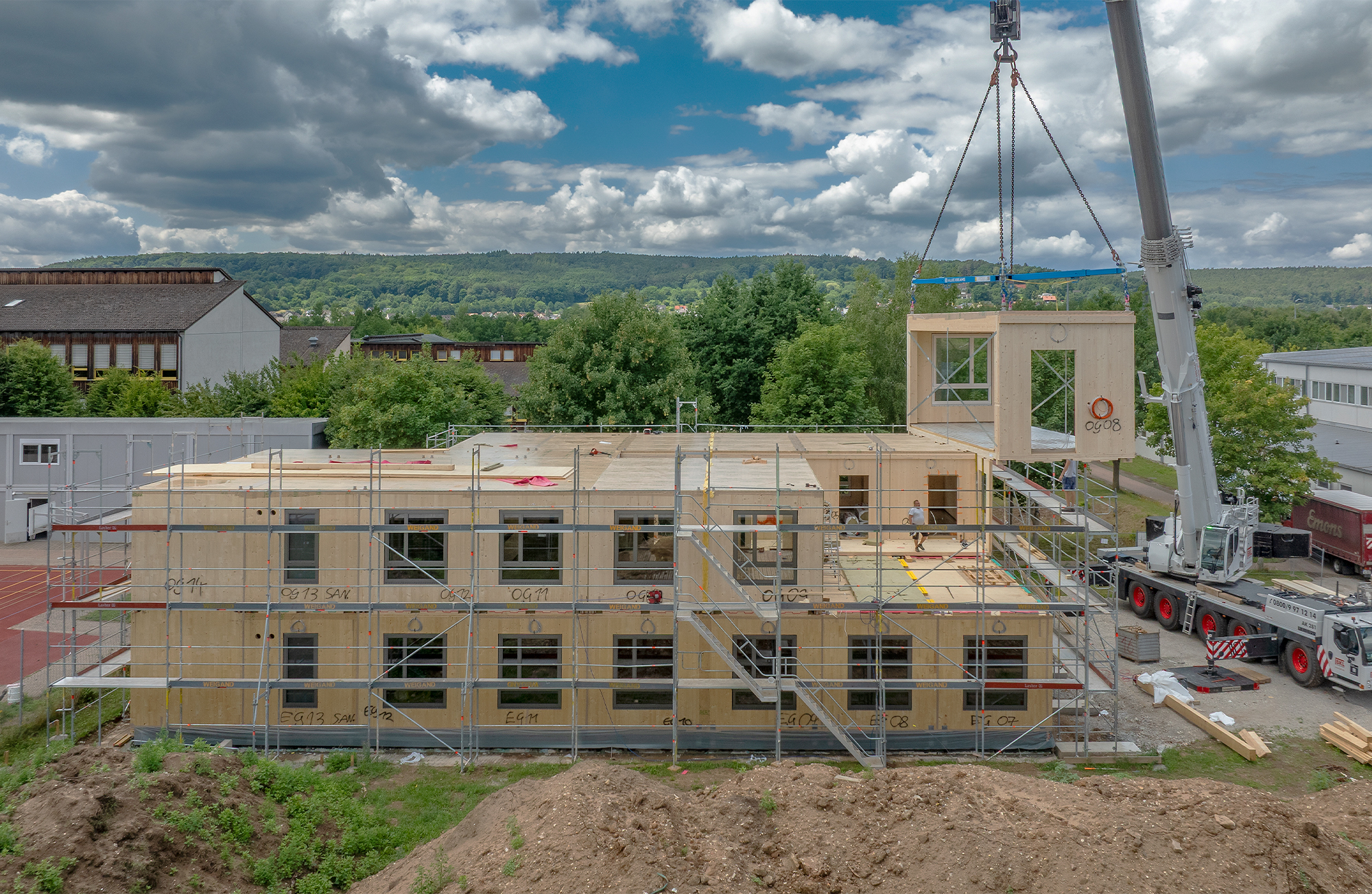 In enger Abstimmung mit der Fa. Recon aus Ebbs entstehen in den nächsten Wochen Ausweichräume in Holzmodulbauweise für das Sonderpädagogische Förderzentrum in Forchheim, welche im Anschluss vielfältig durch das Landratsamt weiter genutzt werden. Näheres zum Projekt und Eindrücke des Entstehungsprozesses finden Sie hier.