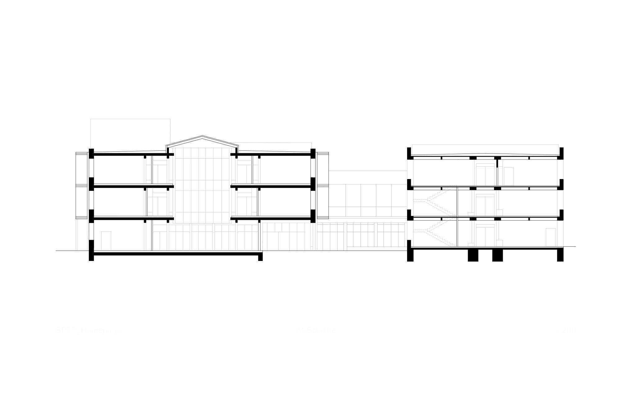 Die Außenwände des Neubaus sowie die neu zu errichtenden Außenwände im Bestand werden in dampfdiffusionsoffener, wärmebrückenarmer, nicht lastabtragender, vorgefertigter Holztafelbauweise mit einer vorgehängten Fassade in Holz oder Metall errichtet.