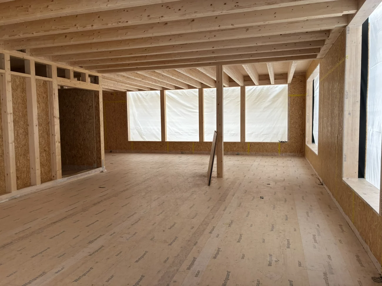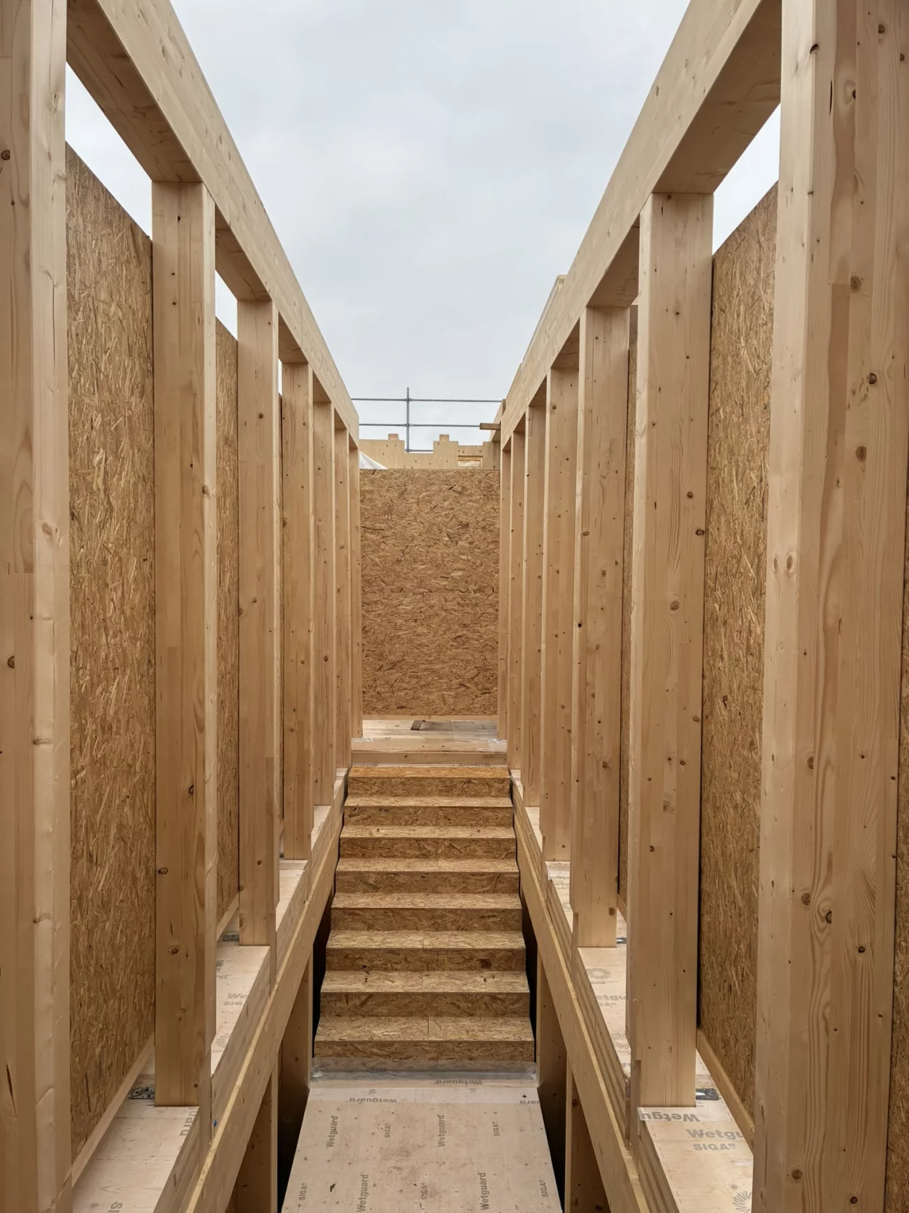 Zur Einhaltung der Abstandsflächen musste das kubische Gebäude zudem mit Terrassen in Richtung des nördlichen Nachbars versehen werden, die sinnfällig den Nutzungsbereichen mit geringerer Nutzfläche zugeordnet werden. Die Abstandsflächen können umlaufend gem. bayerischer Bauordnung abgebildet werden.