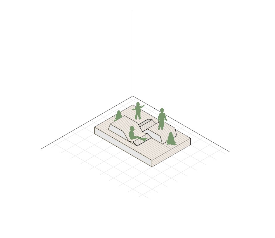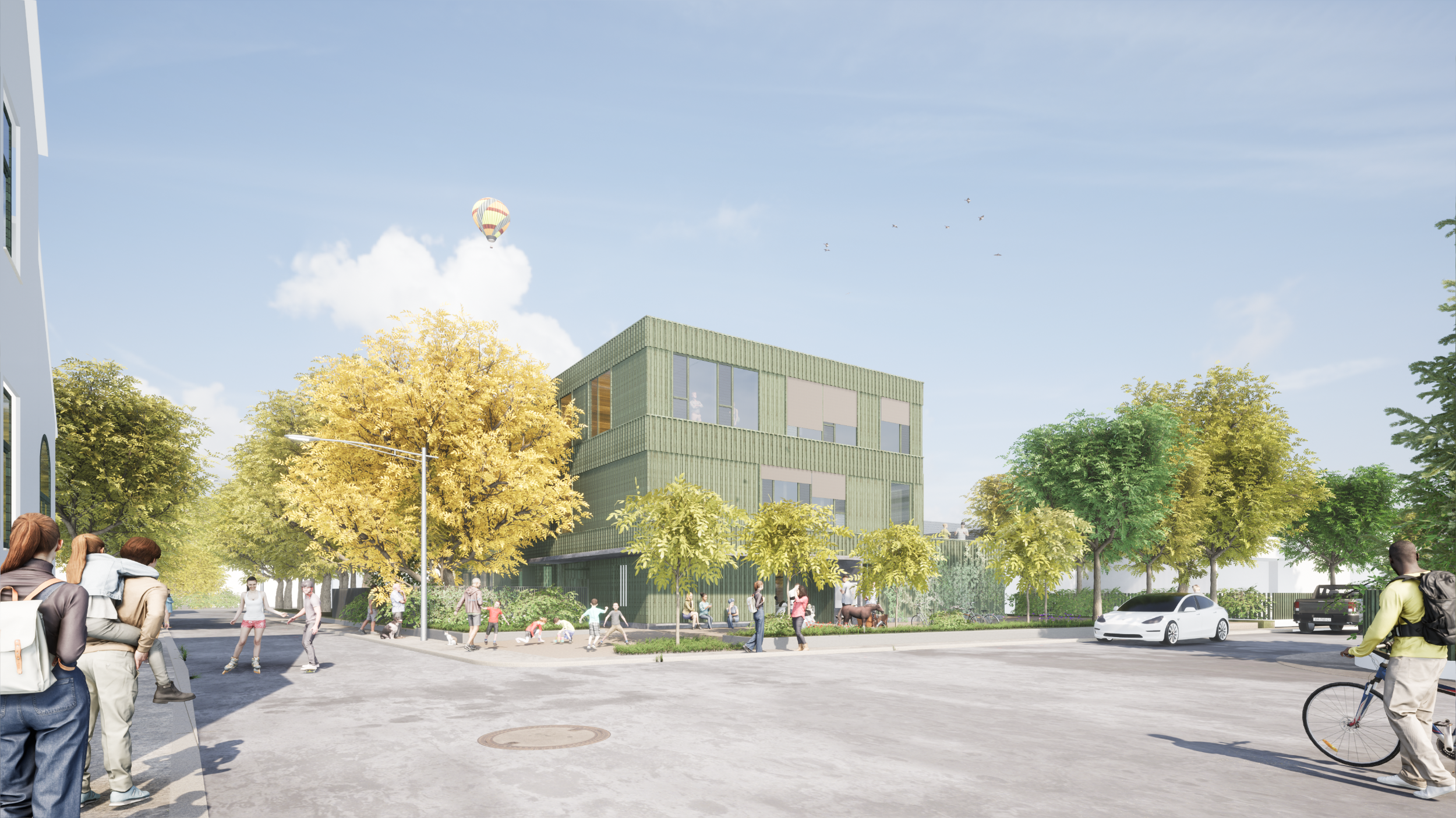 Der Freibereich für eine vielfältige Nutzung für die Kinder wird eingezäunt, wohingegen der Vorbereich dem Straßenraum als halböffentliche Fläche zugeordnet wird.