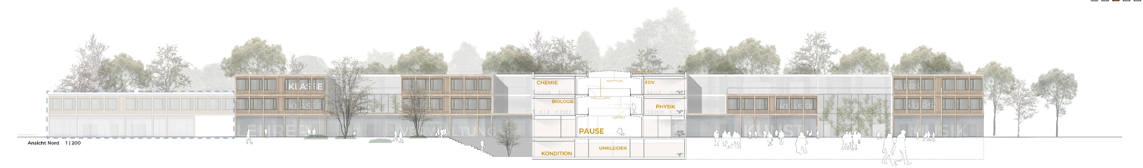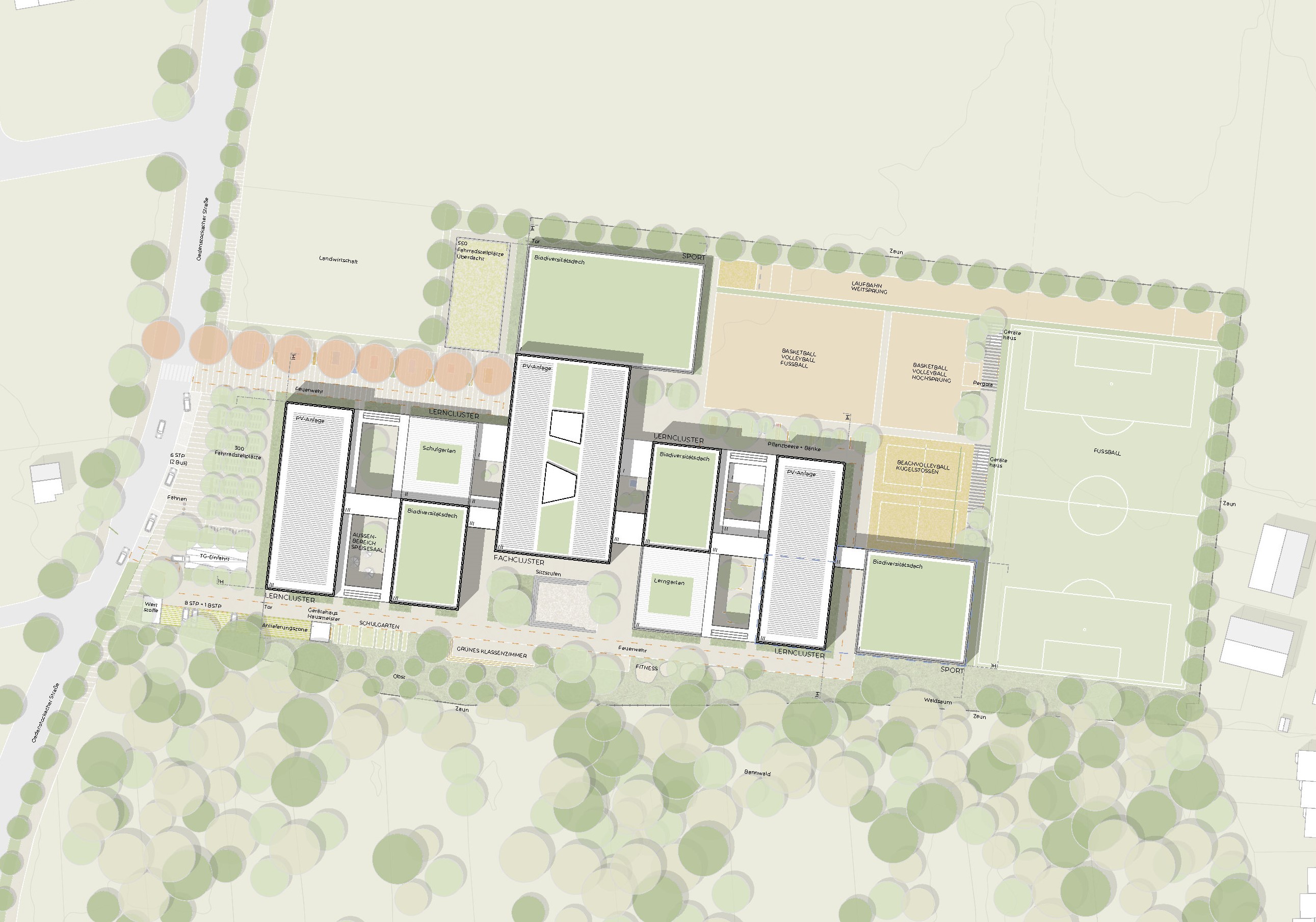 Neubau 4-zügiges Gymnasium, Dreifachsporthalle und Freisportflächen in Putzbrunn, mit Erweiterungsoption auf eine 5-Zügigkeit